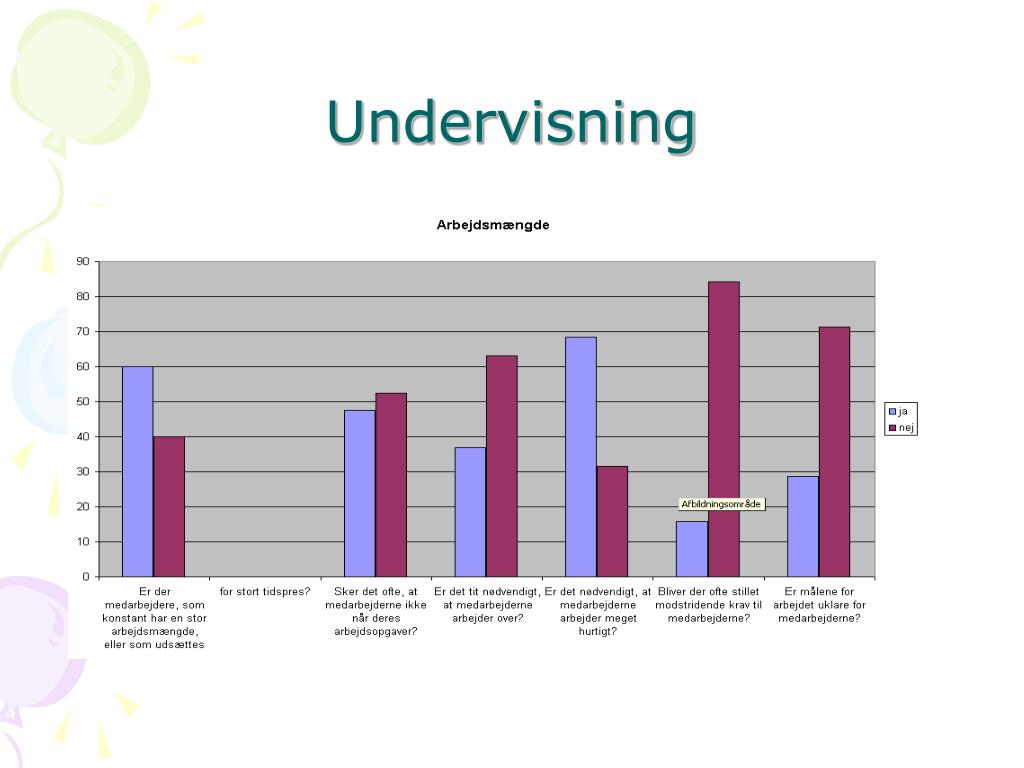 Man føler at man skal arbejde meget hurtigt og under tidspres. • Årsag • Arbejdet fordeles på 209 dage. • Mange opgaver er sæsonbetonet. • Løsning • Drøftes med det pæd. personale i forbindelse med skoleårets planlægning. • Opfølgning • Undersøge om evt. tiltag har virket efter hensigten ved skoleårets afslutning 2010/2011