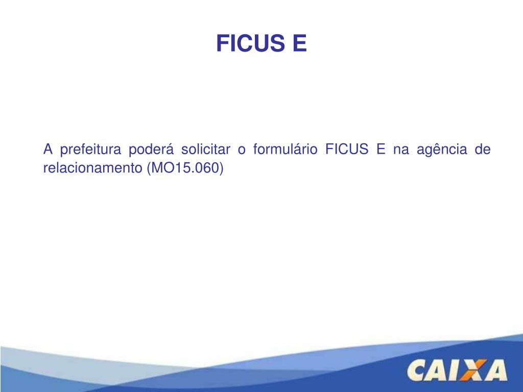 FICUS E • A prefeitura poderá solicitar o formulário FICUS E na agência de relacionamento (MO15.060)