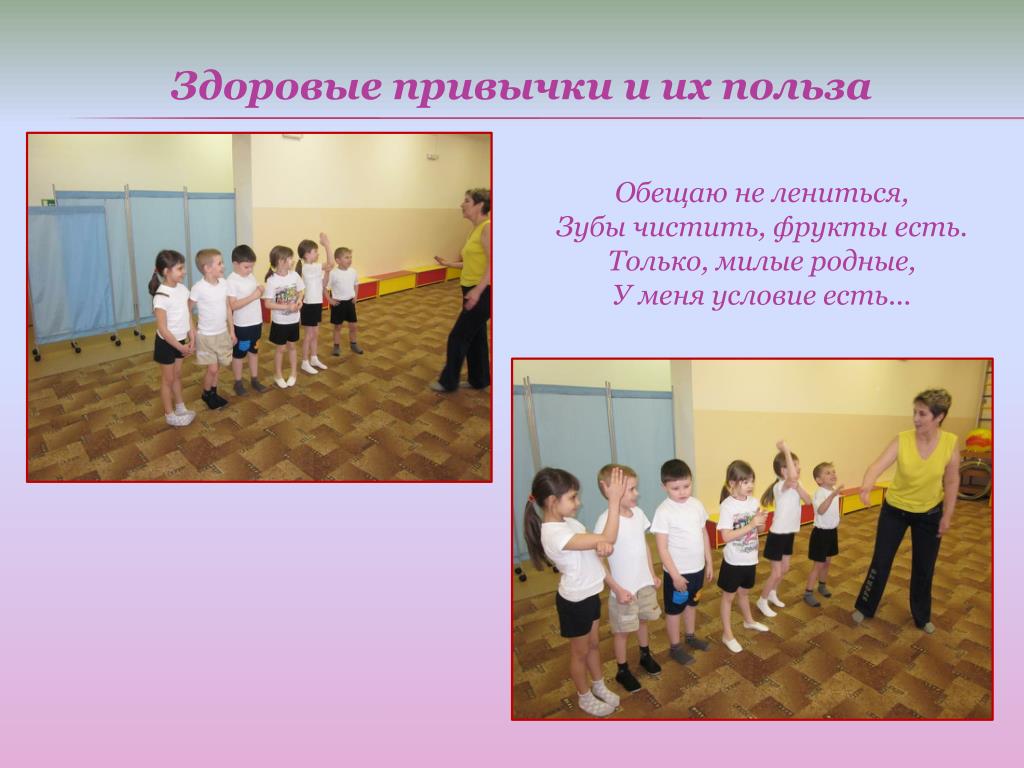 Здоровые привычки и их польза Обещаю не лениться, Зубы чистить, фрукты есть. Только, милые родные, У меня условие есть...