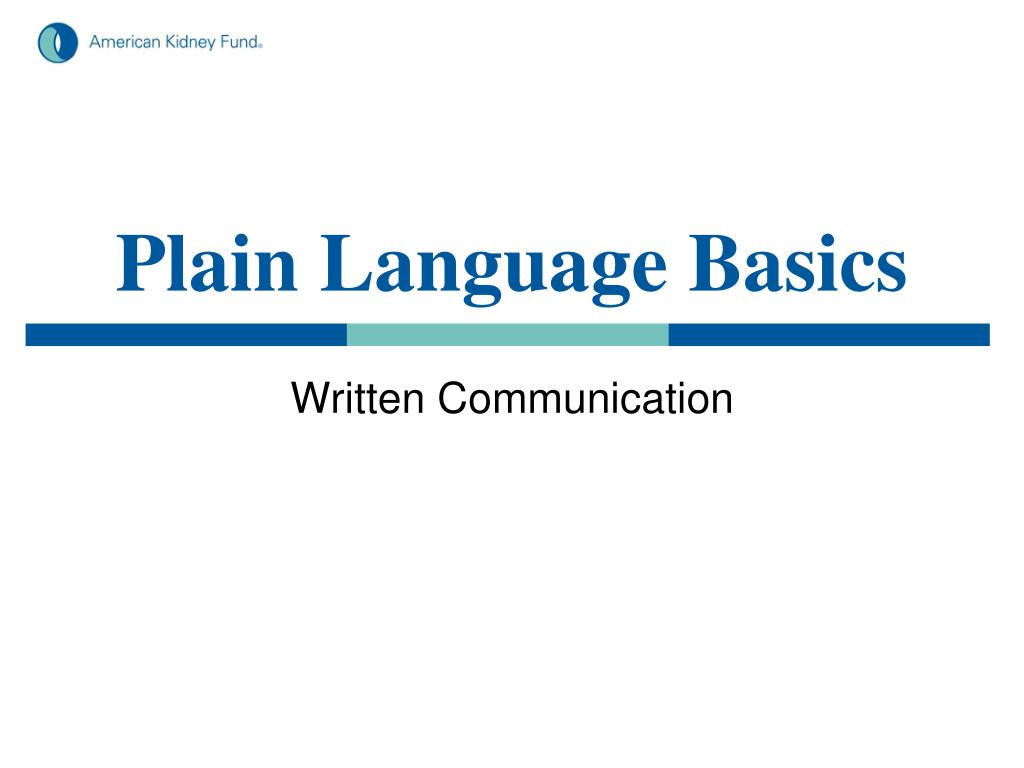 What is Plain Language? • Presenting information so it makes sense to most people. • Using straightforward, concrete, familiar words. • Matches the needs of the reader with your needs as a writer—effective and efficient communication.
