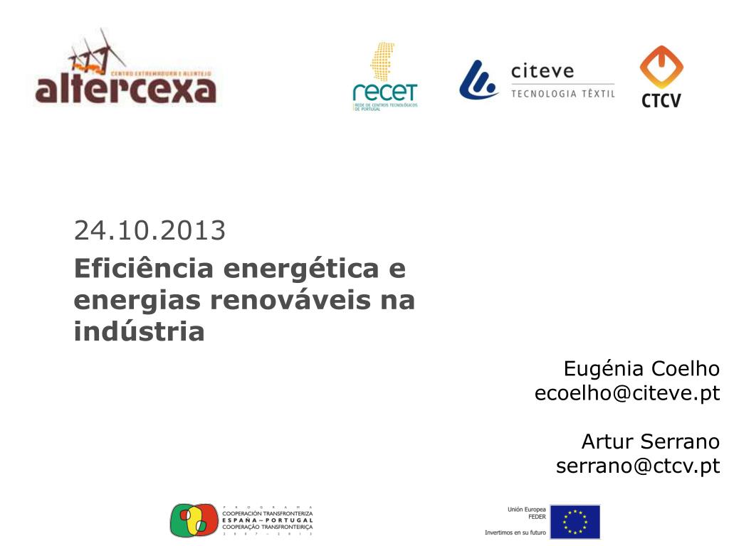 24.10.2013 Eficiênciaenergética e energiasrenováveisnaindústria Eugénia Coelho ecoelho@citeve.pt Artur Serrano serrano@ctcv.pt