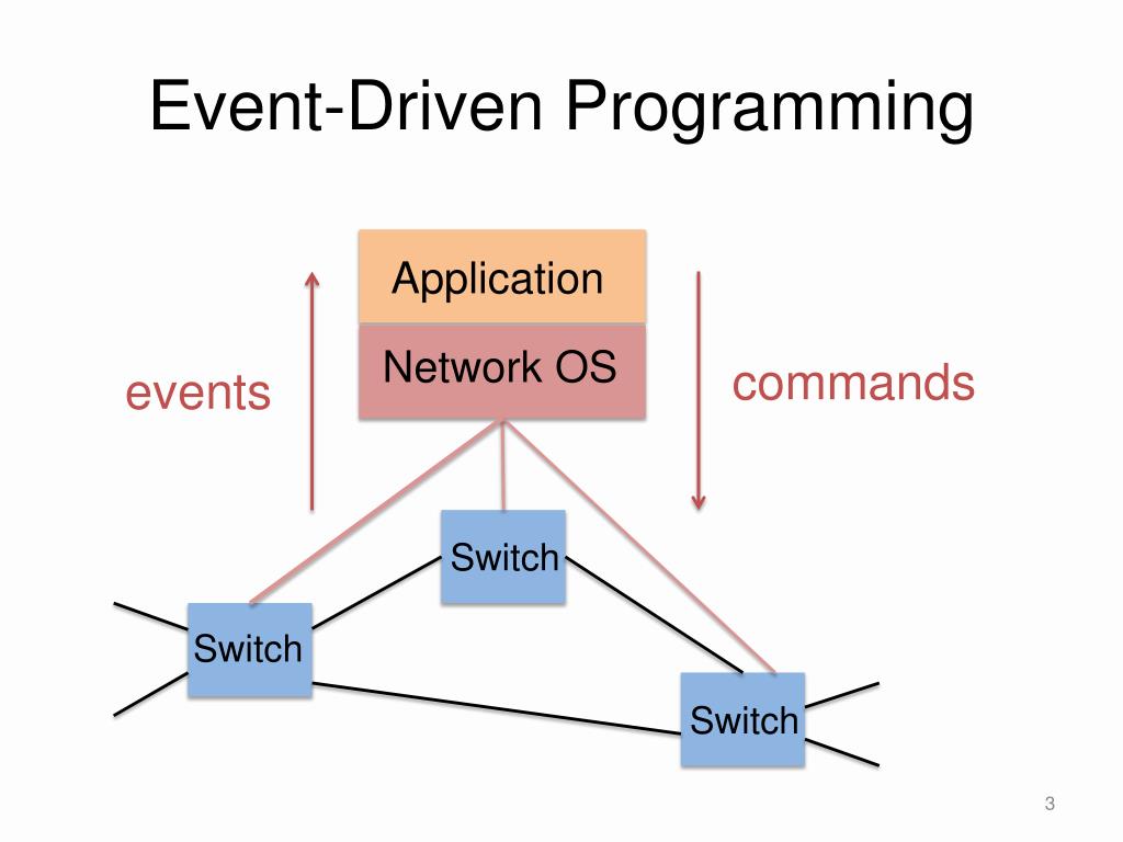 Event-Driven Programming Application Network OS commands events Switch Switch Switch