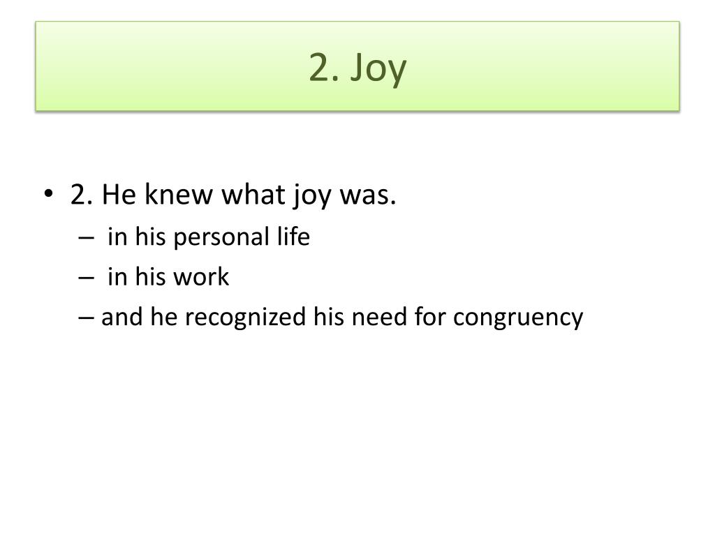 2. Joy • 2. He knew what joy was. • in his personal life • in his work • and he recognized his need for congruency