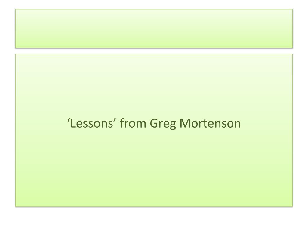 Three Cups of Tea • “Here (in Pakistan and Afghanistan), we drink three cups of tea to do business; the first you are a stranger, the second you become a friend, and the third, you join our family, and for our family we are prepared to do anything – even die.” • Haji Ali, Korphe Village Chief, Karakoram Mountains, Pakistan