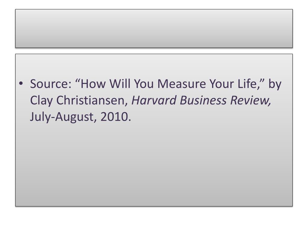 Source: “How Will You Measure Your Life,” by Clay Christiansen, Harvard Business Review, July-August, 2010.