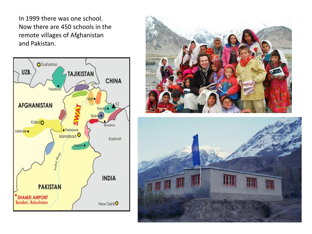 In 1999 there was one school. Now there are 450 schools in the remote villages of Afghanistan and Pakistan.