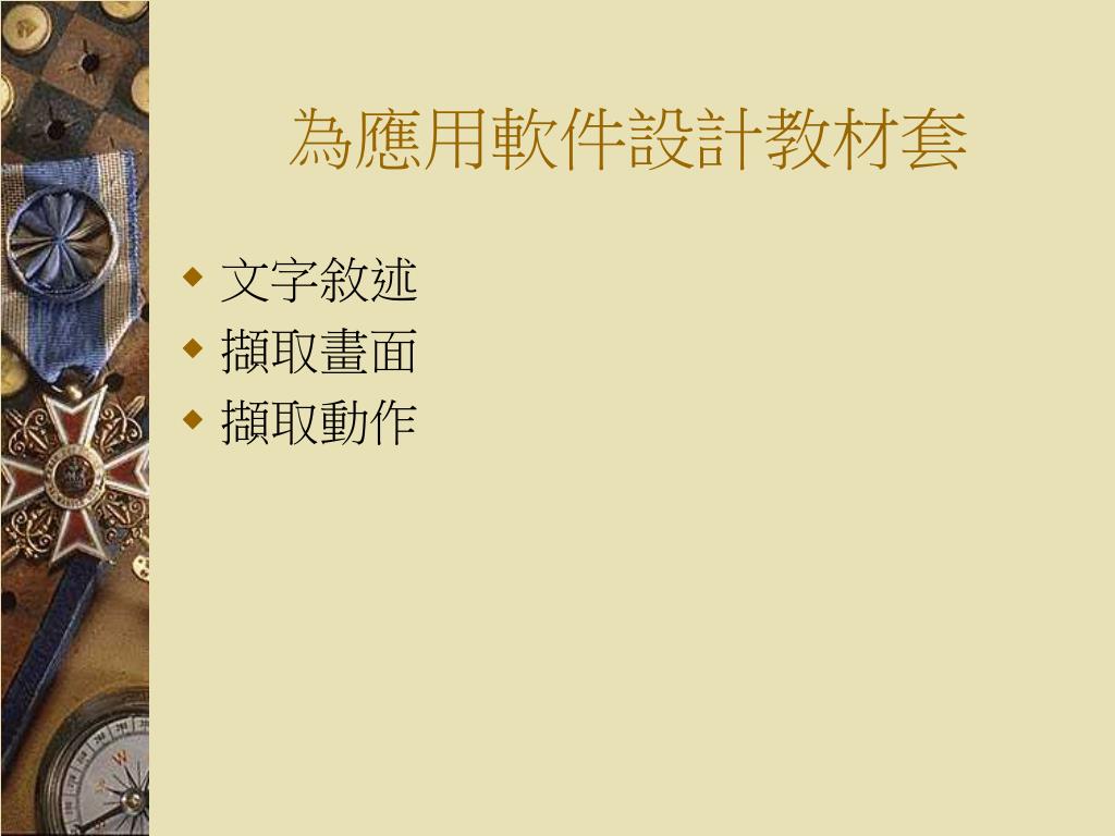 為應用軟件設計教材套 • 文字敘述 • 擷取畫面 • 擷取動作