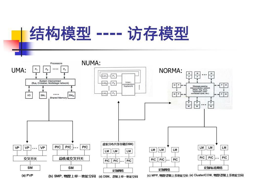 结构模型 ---- 访存模型 UMA: NORMA: NUMA: