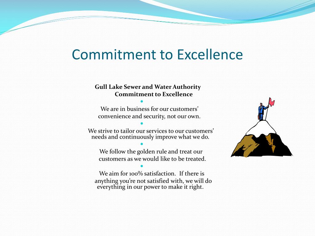 Commitment to Excellence Gull Lake Sewer and Water Authority Commitment to Excellence We are in business for our customers’ convenience and security, not our own. We strive to tailor our services to our customers’ needs and continuously improve what we do. We follow the golden rule and treat our customers as we would like to be treated. We aim for 100% satisfaction. If there is anything you’re not satisfied with, we will do everything in our power to make it right.