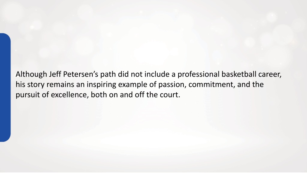 Although Jeff Petersen’s path did not include a professional basketball career, his story remains an inspiring example of passion, commitment, and the pursuit of excellence, both on and off the court.