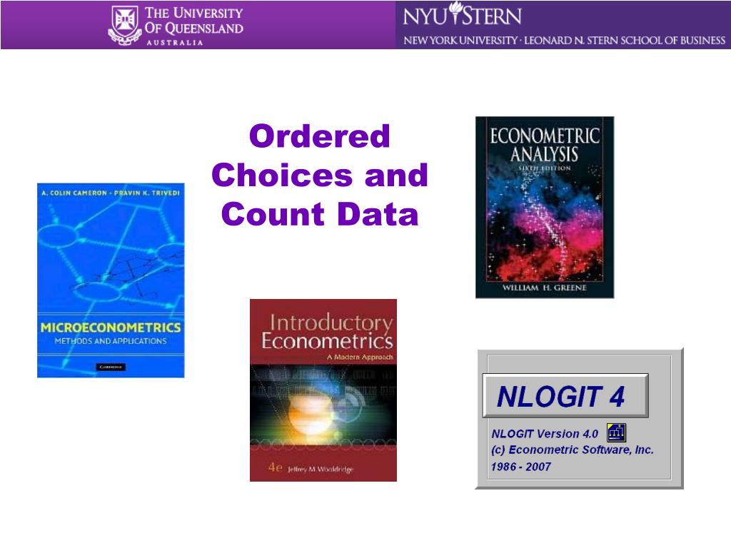 William Greene Department of Economics Stern School of Business Topics in MicroeconometricsUniversity of QueenslandBrisbane, QLDJuly 7-9, 2010