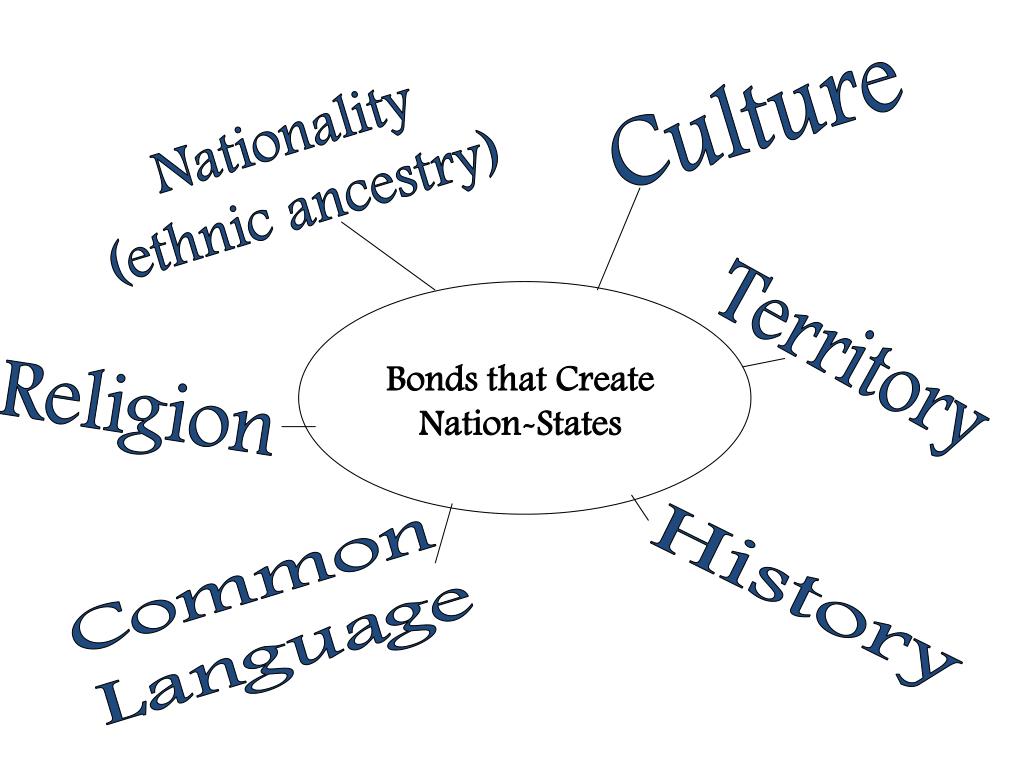Culture Nationality (ethnic ancestry) Territory Bonds that Create Nation-States Religion Common Language History