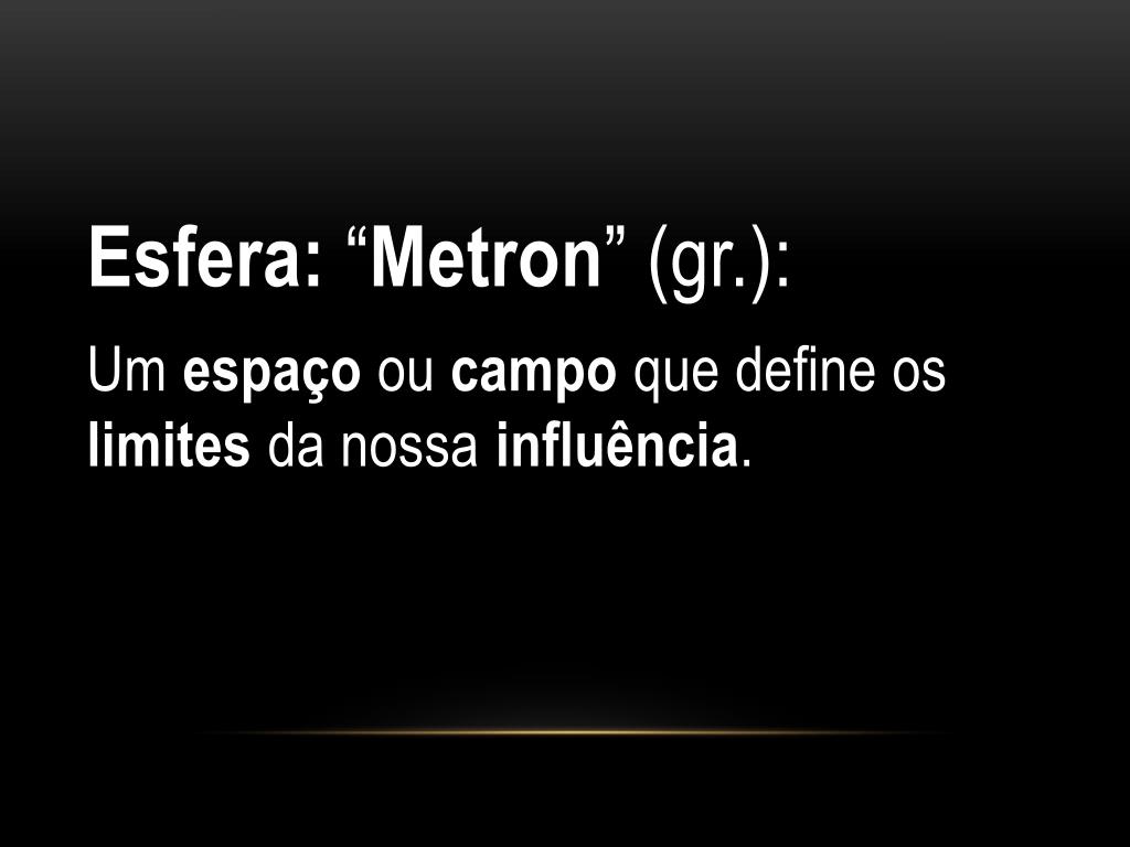Esfera: “Metron” (gr.): Um espaço ou campo que define os limites da nossa influência.