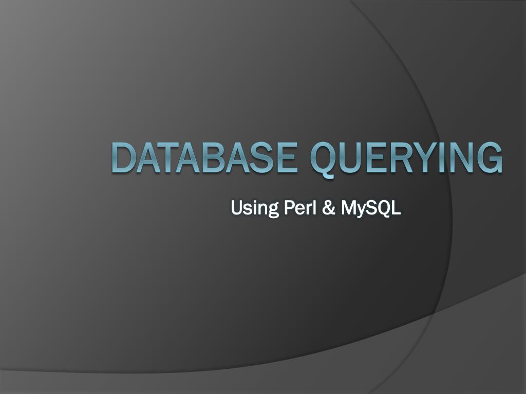 Perl and MySQL • Perl is a programming language based upon C • Used for system administration, web development, and network programming • Interfaces well with databases • MySQL • Database management system • Open source • Often used as a backend for websites