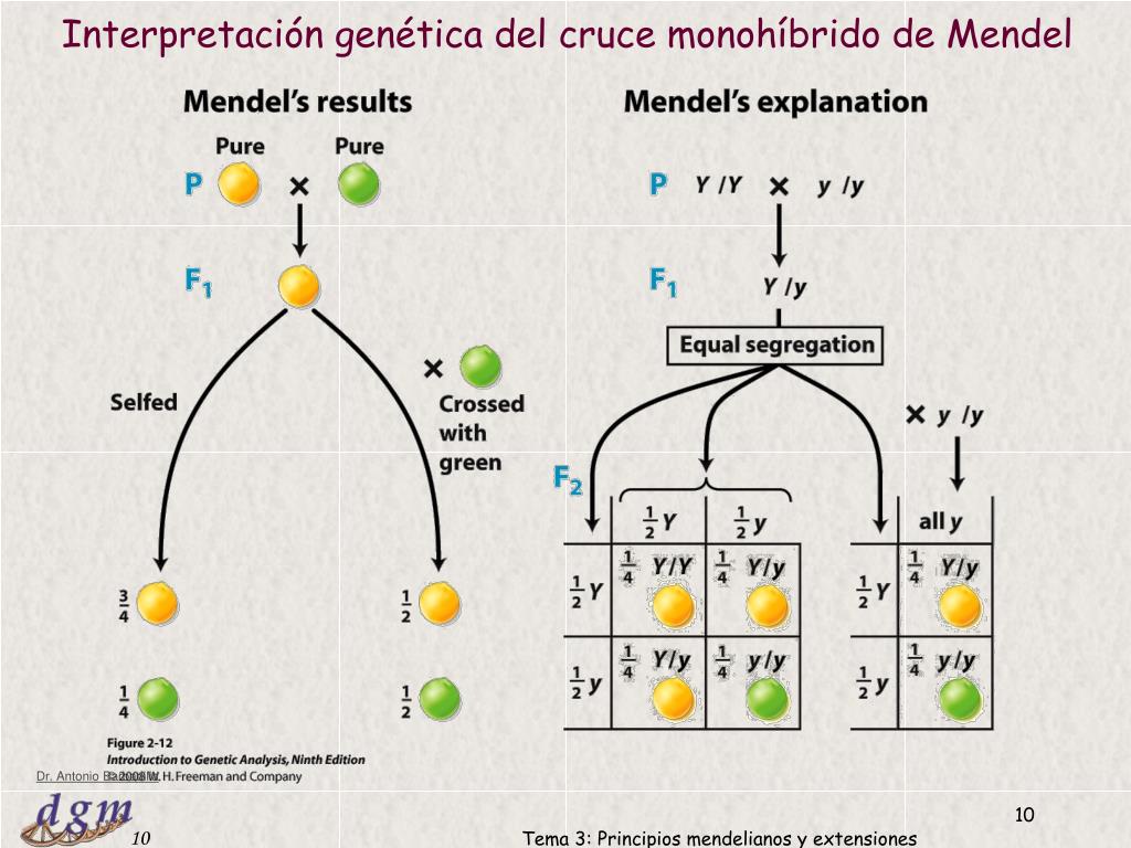 Interpretación genética del cruce monohíbrido de Mendel Tema 3: Principios mendelianos y extensiones