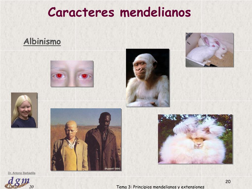 Caracteres mendelianos Albinismo Tema 3: Principios mendelianos y extensiones
