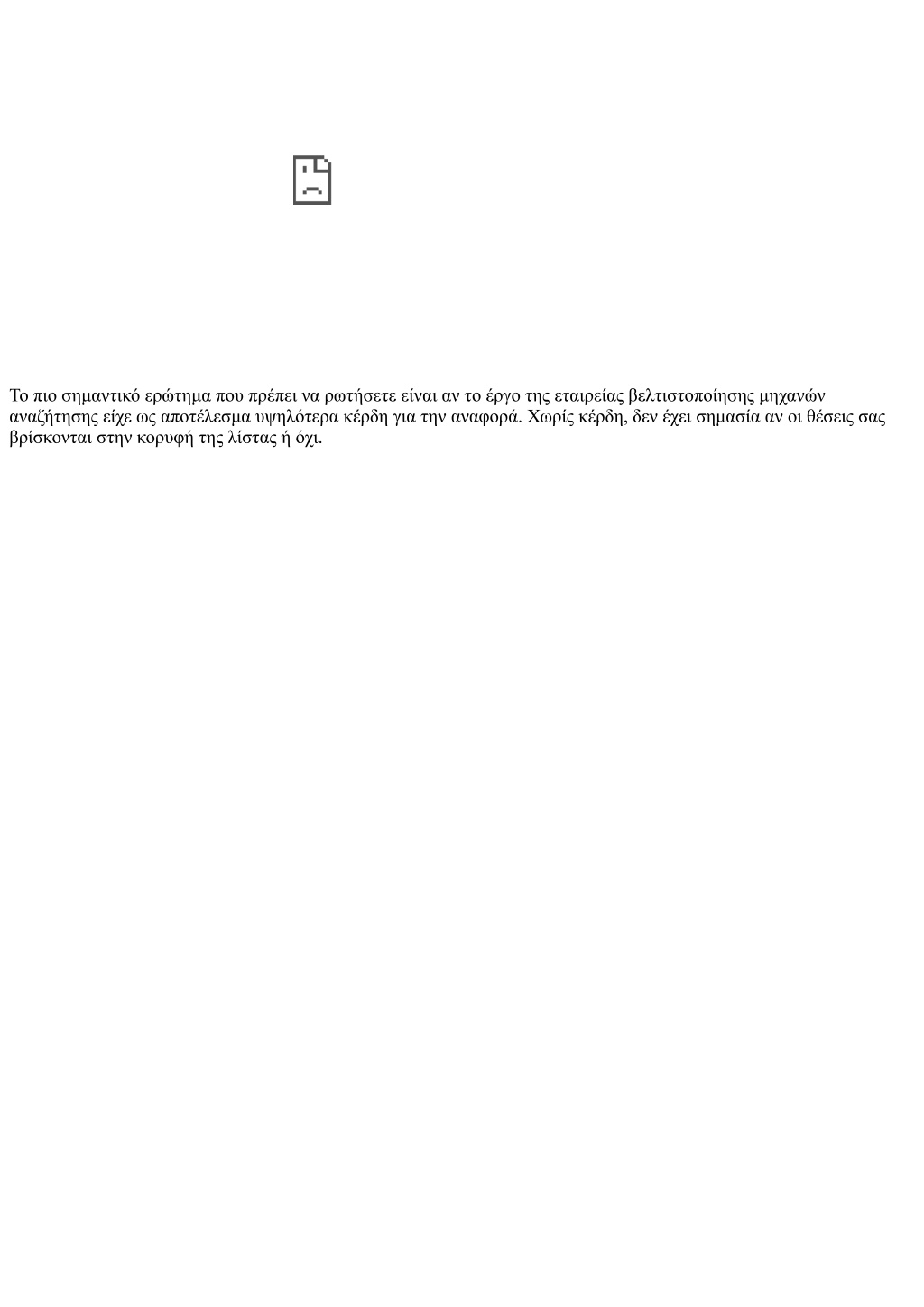 Το πιο σημαντικό ερώτημα που πρέπει να ρωτήσετε είναι αν το έργο της εταιρείας βελτιστοποίησης μηχανών αναζήτησης είχε ως αποτέλεσμα υψηλότερα κέρδη για την αναφορά. Χωρίς κέρδη, δεν έχει σημασία αν οι θέσεις σας βρίσκονται στην κορυφή της λίστας ή όχι.