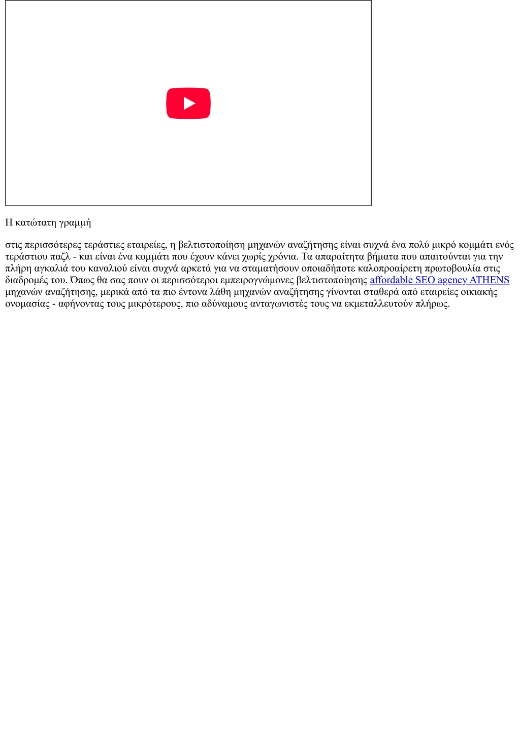 Η κατώτατη γραμμή στις περισσότερες τεράστιες εταιρείες, η βελτιστοποίηση μηχανών αναζήτησης είναι συχνά ένα πολύ μικρό κομμάτι ενός τεράστιου παζλ - και είναι ένα κομμάτι που έχουν κάνει χωρίς χρόνια. Τα απαραίτητα βήματα που απαιτούνται για την πλήρη αγκαλιά του καναλιού είναι συχνά αρκετά για να σταματήσουν οποιαδήποτε καλοπροαίρετη πρωτοβουλία στις διαδρομές του. Όπως θα σας πουν οι περισσότεροι εμπειρογνώμονες βελτιστοποίησης affordable SEO agency ATHENS μηχανών αναζήτησης, μερικά από τα πιο έντονα λάθη μηχανών αναζήτησης γίνονται σταθερά από εταιρείες οικιακής ονομασίας - αφήνοντας τους μικρότερους, πιο αδύναμους ανταγωνιστές τους να εκμεταλλευτούν πλήρως.