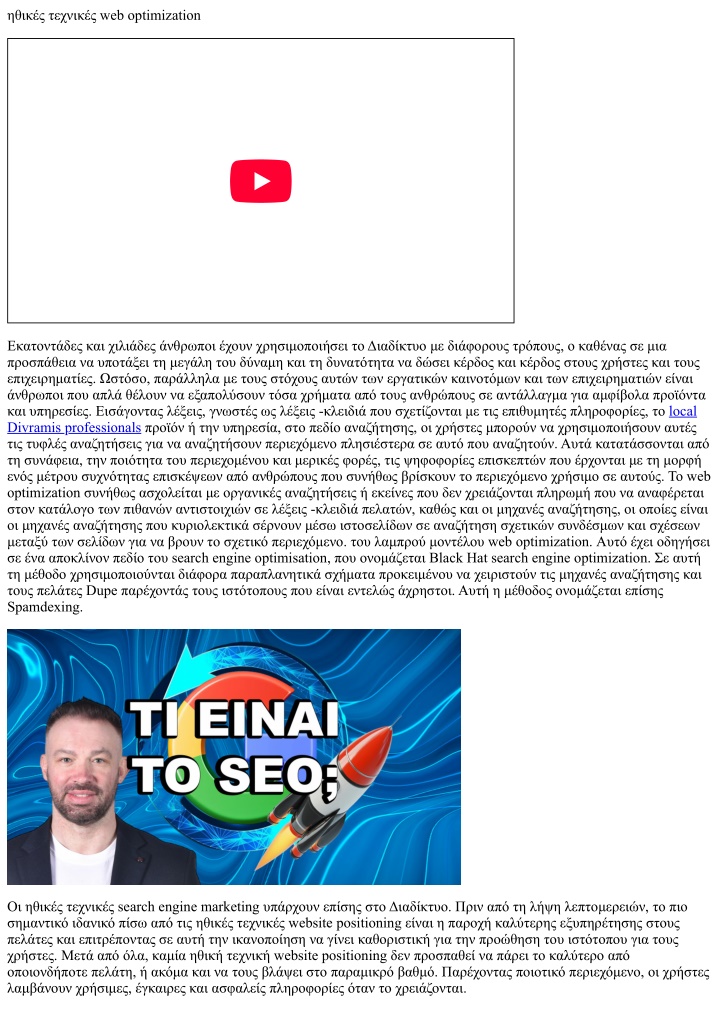 ηθικές τεχνικές web optimization Εκατοντάδες και χιλιάδες άνθρωποι έχουν χρησιμοποιήσει το Διαδίκτυο με διάφορους τρόπους, ο καθένας σε μια προσπάθεια να υποτάξει τη μεγάλη του δύναμη και τη δυνατότητα να δώσει κέρδος και κέρδος στους χρήστες και τους επιχειρηματίες. Ωστόσο, παράλληλα με τους στόχους αυτών των εργατικών καινοτόμων και των επιχειρηματιών είναι άνθρωποι που απλά θέλουν να εξαπολύσουν τόσα χρήματα από τους ανθρώπους σε αντάλλαγμα για αμφίβολα προϊόντα και υπηρεσίες. Εισάγοντας λέξεις, γνωστές ως λέξεις -κλειδιά που σχετίζονται με τις επιθυμητές πληροφορίες, το local Divramis professionals προϊόν ή την υπηρεσία, στο πεδίο αναζήτησης, οι χρήστες μπορούν να χρησιμοποιήσουν αυτές τις τυφλές αναζητήσεις για να αναζητήσουν περιεχόμενο πλησιέστερα σε αυτό που αναζητούν. Αυτά κατατάσσονται από τη συνάφεια, την ποιότητα του περιεχομένου και μερικές φορές, τις ψηφοφορίες επισκεπτών που έρχονται με τη μορφή ενός μέτρου συχνότητας επισκέψεων από ανθρώπους που συνήθως βρίσκουν το περιεχόμενο χρήσιμο σε αυτούς. Το web optimization συνήθως ασχολείται με οργανικές αναζητήσεις ή εκείνες που δεν χρειάζονται πληρωμή που να αναφέρεται στον κατάλογο των πιθανών αντιστοιχιών σε λέξεις -κλειδιά πελατών, καθώς και οι μηχανές αναζήτησης, οι οποίες είναι οι μηχανές αναζήτησης που κυριολεκτικά σέρνουν μέσω ιστοσελίδων σε αναζήτηση σχετικών συνδέσμων και σχέσεων μεταξύ των σελίδων για να βρουν το σχετικό περιεχόμενο. του λαμπρού μοντέλου web optimization. Αυτό έχει οδηγήσει σε ένα αποκλίνον πεδίο του search engine optimisation, που ονομάζεται Black Hat search engine optimization. Σε αυτή τη μέθοδο χρησιμοποιούνται διάφορα παραπλανητικά σχήματα προκειμένου να χειριστούν τις μηχανές αναζήτησης και τους πελάτες Dupe παρέχοντάς τους ιστότοπους που είναι εντελώς άχρηστοι. Αυτή η μέθοδος ονομάζεται επίσης Spamdexing. Οι ηθικές τεχνικές search engine marketing υπάρχουν επίσης στο Διαδίκτυο. Πριν από τη λήψη λεπτομερειών, το πιο σημαντικό ιδανικό πίσω από τις ηθικές τεχνικές website positioning είναι η παροχή καλύτερης εξυπηρέτησης στους πελάτες και επιτρέποντας σε αυτή την ικανοποίηση να γίνει καθοριστική για την προώθηση του ιστότοπου για τους χρήστες. Μετά από όλα, καμία ηθική τεχνική website positioning δεν προσπαθεί να πάρει το καλύτερο από οποιονδήποτε πελάτη, ή ακόμα και να τους βλάψει στο παραμικρό βαθμό. Παρέχοντας ποιοτικό περιεχόμενο, οι χρήστες λαμβάνουν χρήσιμες, έγκαιρες και ασφαλείς πληροφορίες όταν το χρειάζονται.