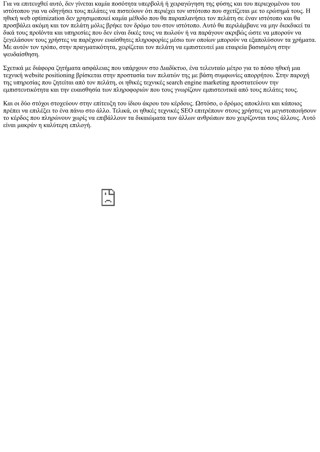 Για να επιτευχθεί αυτό, δεν γίνεται καμία ποσότητα υπερβολή ή χειραγώγηση της φύσης και του περιεχομένου του ιστότοπου για να οδηγήσει τους πελάτες να πιστεύουν ότι περιέχει τον ιστότοπο που σχετίζεται με το ερώτημά τους. Η ηθική web optimization δεν χρησιμοποιεί καμία μέθοδο που θα παραπλανήσει τον πελάτη σε έναν ιστότοπο και θα προσβάλει ακόμη και τον πελάτη μόλις βρήκε τον δρόμο του στον ιστότοπο. Αυτό θα περιλάμβανε να μην διεκδικεί τα δικά τους προϊόντα και υπηρεσίες που δεν είναι δικές τους να πωλούν ή να παράγουν ακριβώς ώστε να μπορούν να ξεγελάσουν τους χρήστες να παρέχουν ευαίσθητες πληροφορίες μέσω των οποίων μπορούν να εξαπολύσουν τα χρήματα. Με αυτόν τον τρόπο, στην πραγματικότητα, χειρίζεται τον πελάτη να εμπιστευτεί μια εταιρεία βασισμένη στην ψευδαίσθηση. Σχετικά με διάφορα ζητήματα ασφάλειας που υπάρχουν στο Διαδίκτυο, ένα τελευταίο μέτρο για το πόσο ηθική μια τεχνική website positioning βρίσκεται στην προστασία των πελατών της με βάση συμφωνίες απορρήτου. Στην παροχή της υπηρεσίας που ζητείται από τον πελάτη, οι ηθικές τεχνικές search engine marketing προστατεύουν την εμπιστευτικότητα και την ευαισθησία των πληροφοριών που τους γνωρίζουν εμπιστευτικά από τους πελάτες τους. Και οι δύο στόχοι στοχεύουν στην επίτευξη του ίδιου άκρου του κέρδους. Ωστόσο, ο δρόμος αποκλίνει και κάποιος πρέπει να επιλέξει το ένα πάνω στο άλλο. Τελικά, οι ηθικές τεχνικές SEO επιτρέπουν στους χρήστες να μεγιστοποιήσουν το κέρδος που πληρώνουν χωρίς να επιβάλλουν τα δικαιώματα των άλλων ανθρώπων που χειρίζονται τους άλλους. Αυτό είναι μακράν η καλύτερη επιλογή.