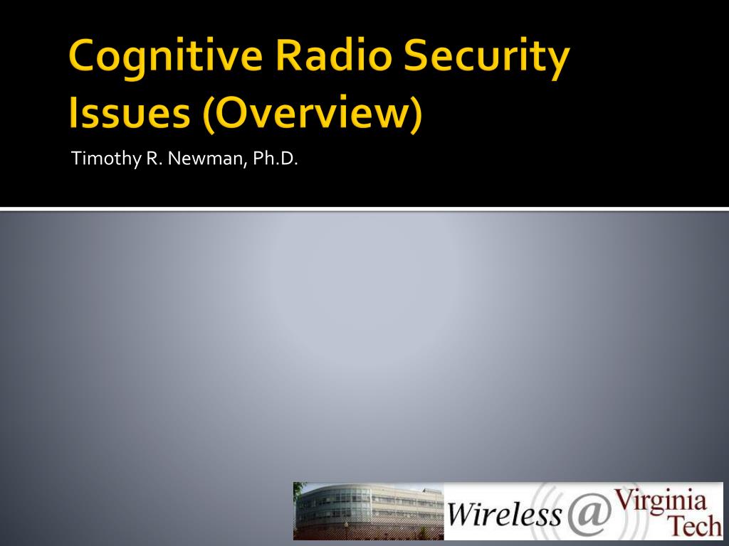 Cognitive Radio Security Issues (Overview) Timothy R. Newman, Ph.D.