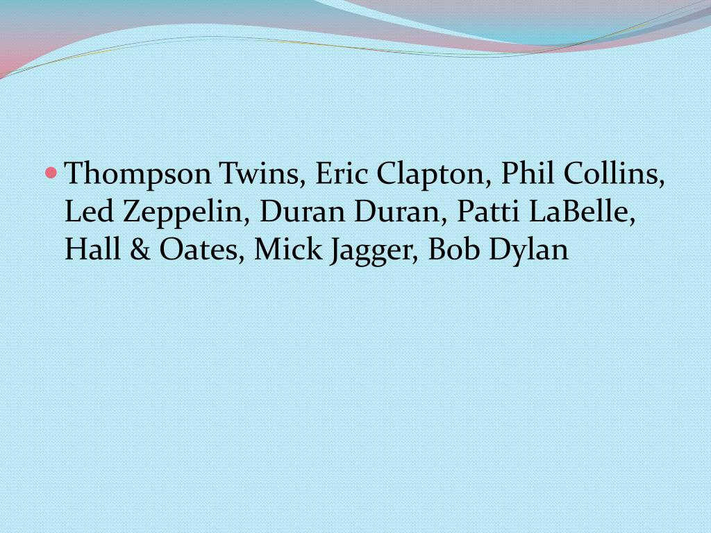 Thompson Twins, Eric Clapton, Phil Collins, Led Zeppelin, Duran Duran, Patti LaBelle, Hall & Oates, Mick Jagger, Bob Dylan