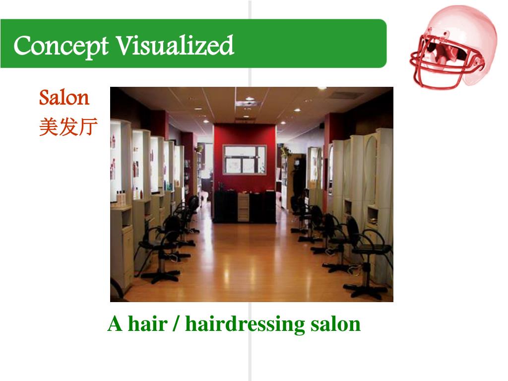 Concept Visualized • Toupee 男用假发 • Does he wear a ~? • Hairpiece • Wig 假发套 • He wore a false • beard and a ~. • The thief went around • disguised in a ~.