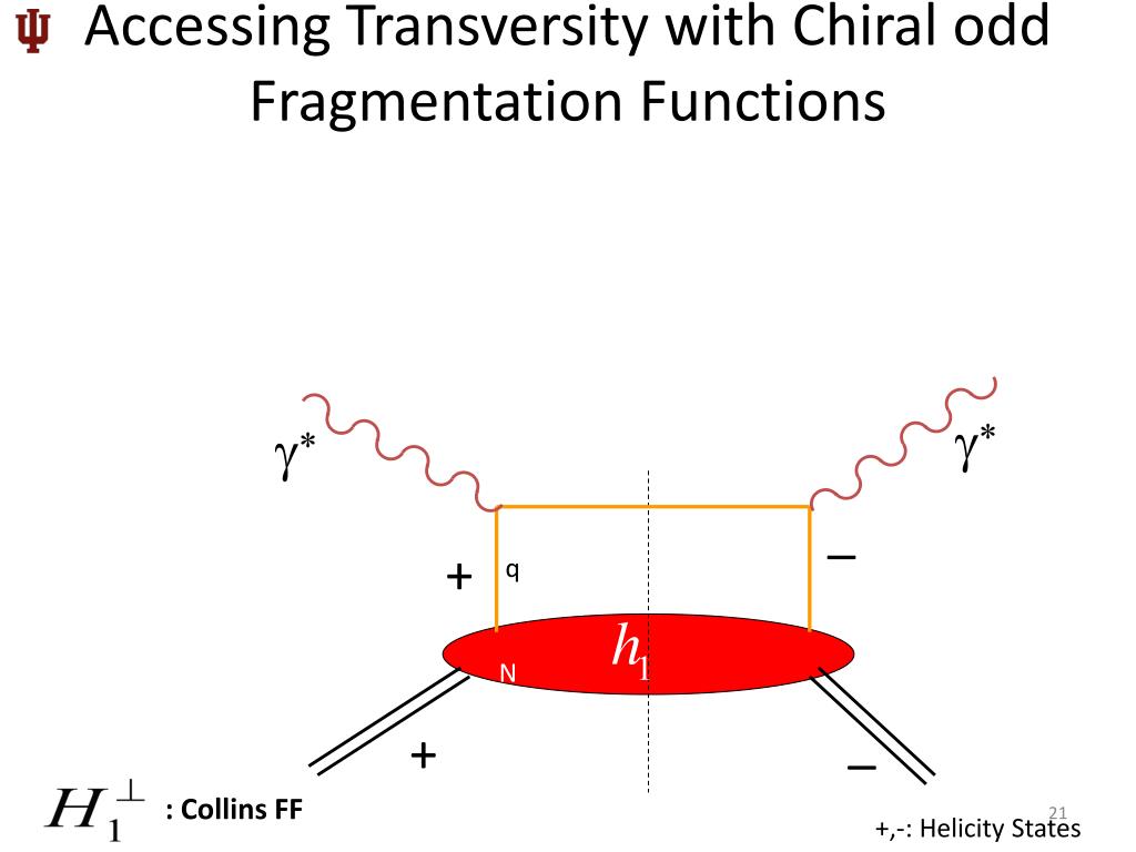 Accessing Transversity with Chiral odd Fragmentation Functions * * _ + q N _ + : Collins FF +,-: Helicity States