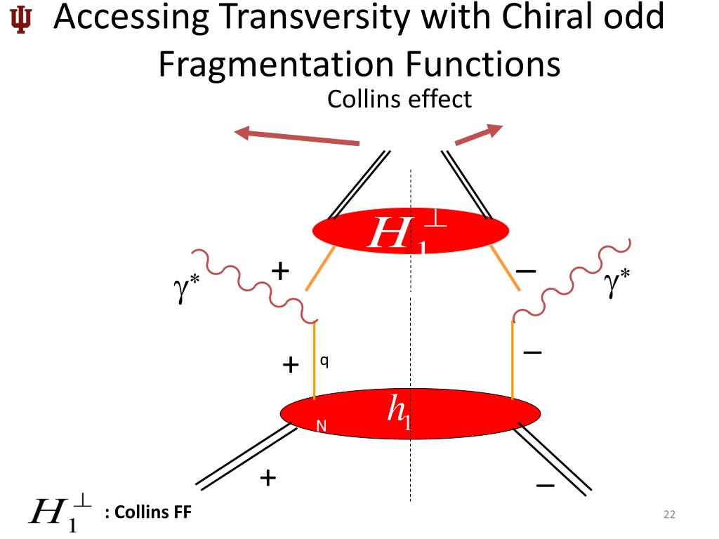 _ Accessing Transversity with Chiral odd Fragmentation Functions Collins effect + * * _ + q N _ + : Collins FF
