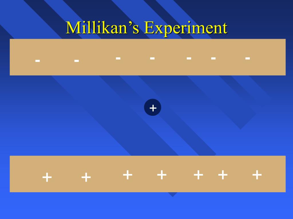 Millikan’s Experiment - - + + From the mass of the drop and the charge on the plates, he calculated the charge on an electron