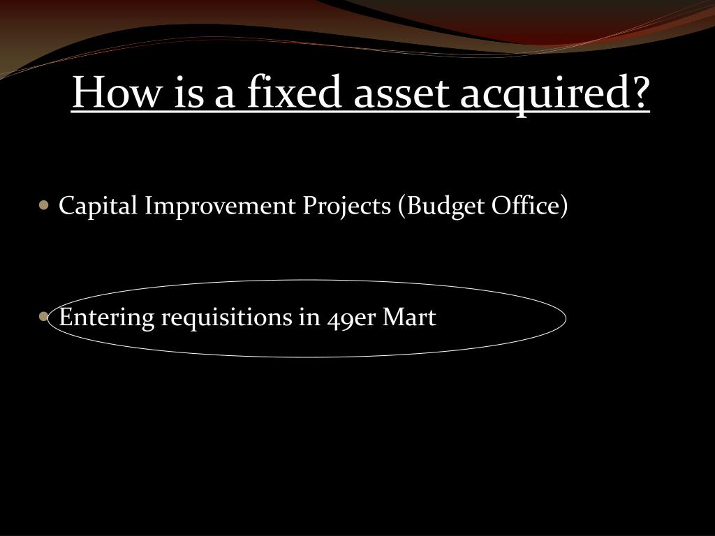 How is a fixed asset acquired? • Capital Improvement Projects (Budget Office) • Entering requisitions in 49er Mart