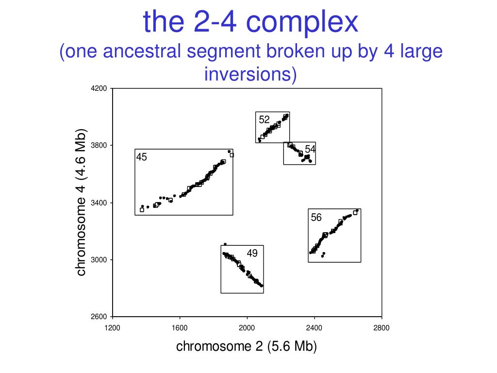 the 2-4 complex(one ancestral segment broken up by 4 large inversions)