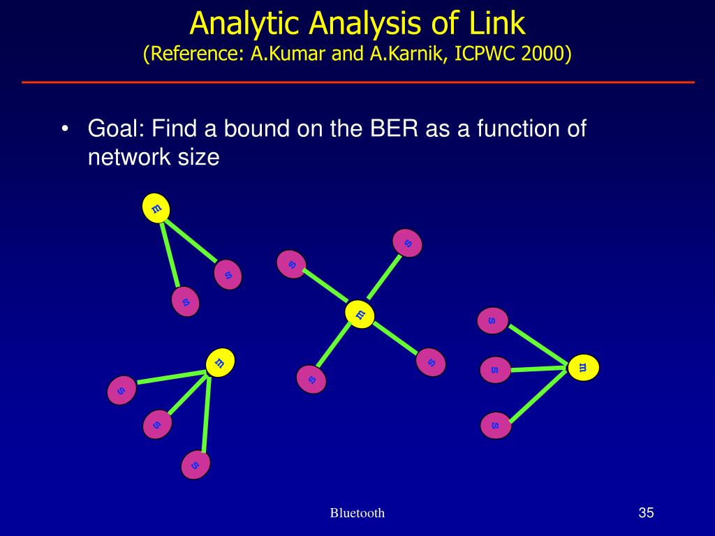 m m m s s s s s s s s s s s m s Analytic Analysis of Link(Reference: A.Kumar and A.Karnik, ICPWC 2000) • Goal: Find a bound on the BER as a function of network size Bluetooth