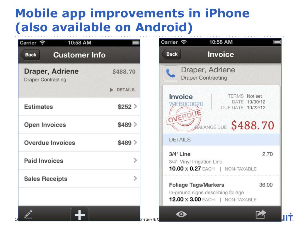 Mobile app improvements already released! • New navigation with 1-tap access to features • Easy to see key data in lists • Improved customer filtering, details & maps • Optimized for iPhone 5 screen size • iOS6 supported