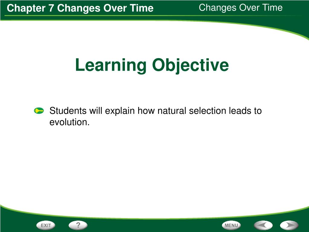 Changes Over Time Learning Objective Students will explain how natural selection leads to evolution.