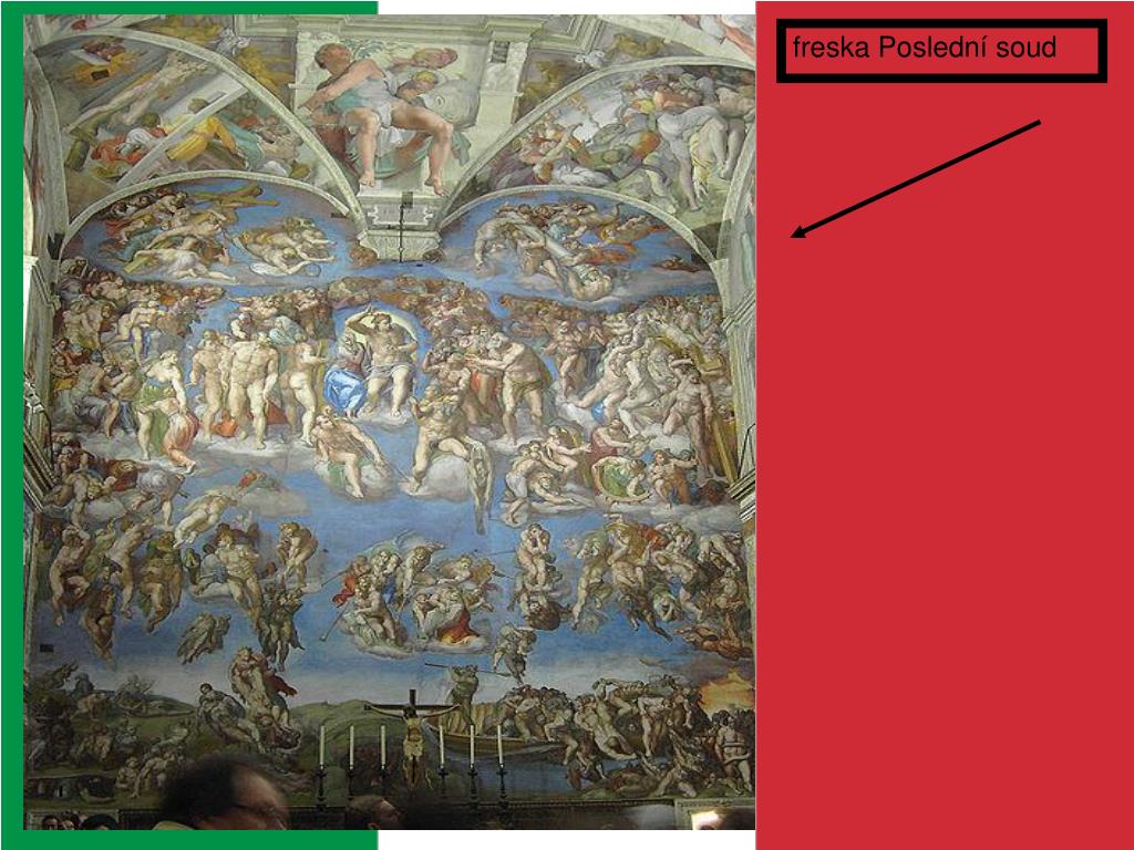 Italští umělci Leonardo da Vinci 15.dubna 1452 - 2. května 1519 - všestranný - (malíř, sochař, architekt, matematik, přírodovědec, spisovatel,…) - zabýval se technikou a zkoumáním lidského tělo známá díla: *obraz Mona Lisa *obraz Poslední večeře * obraz Madona ve skalách