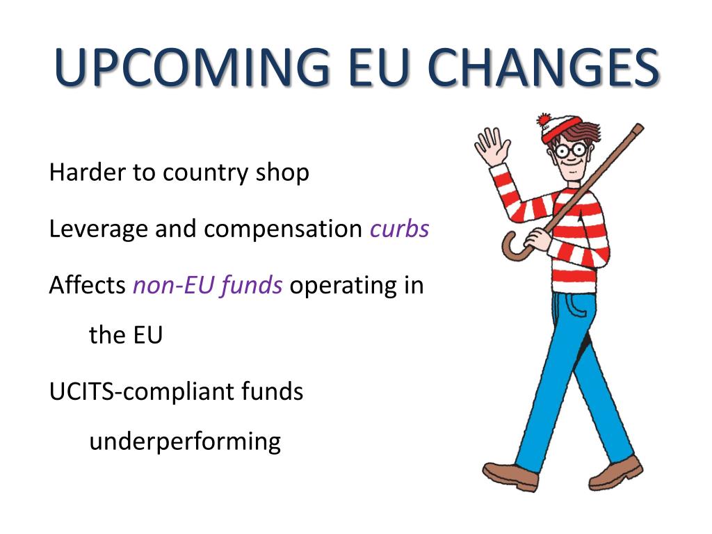 UPCOMING EU CHANGES Harder to country shop Leverage and compensation curbs Affects non-EU funds operating in the EU UCITS-compliant funds underperforming