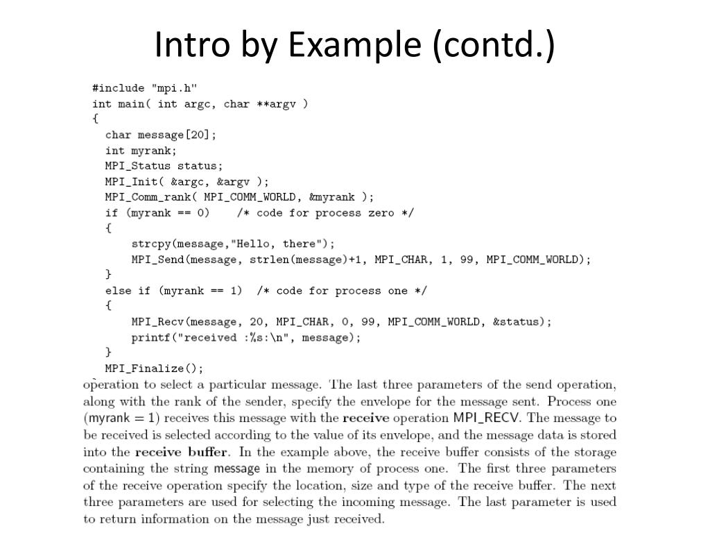 Acknowledgements • MPI: A Message-Passing Interface Standard, Version 2.2, by The Message Passing Interface Forum • Tutorial on MPI: The Message-Passing Interface (Slides), William D Gropp; see http://www.mcs.anl.gov/research/projects/mpi/tutorial/gropp/talk.html