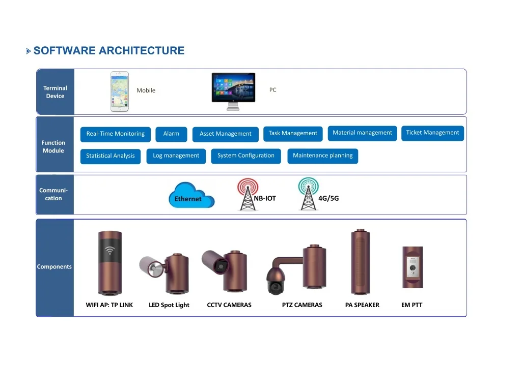 SMART POLE -OVERVIEW LED Spot Light PA SPEAKER PTZ CAMERAS EM PTT SMART POLE -LAMP
