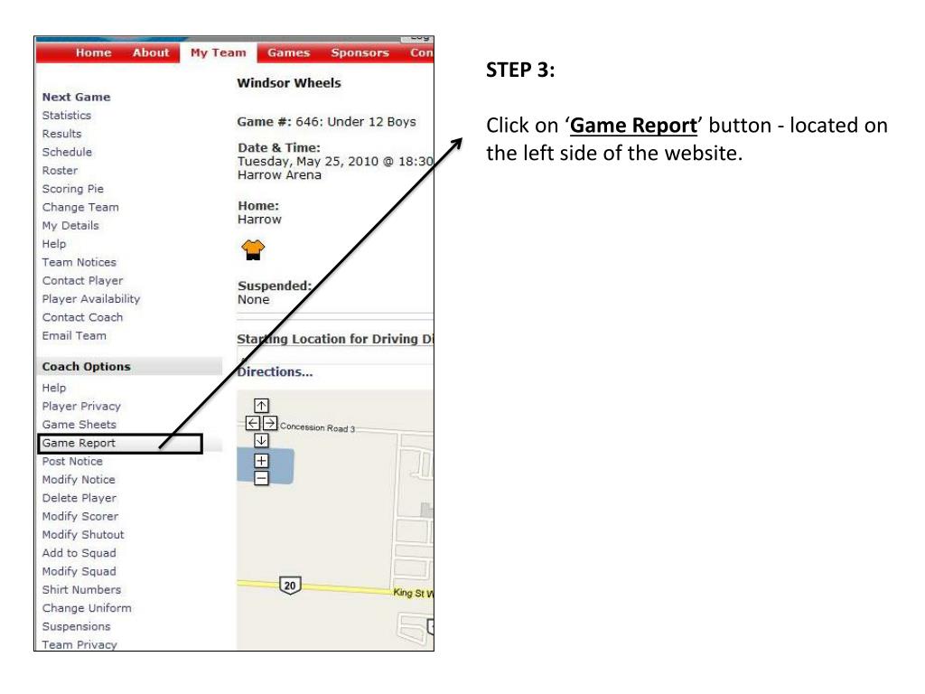 STEP 3:Click on ‘Game Report’ button - located on the left side of the website.