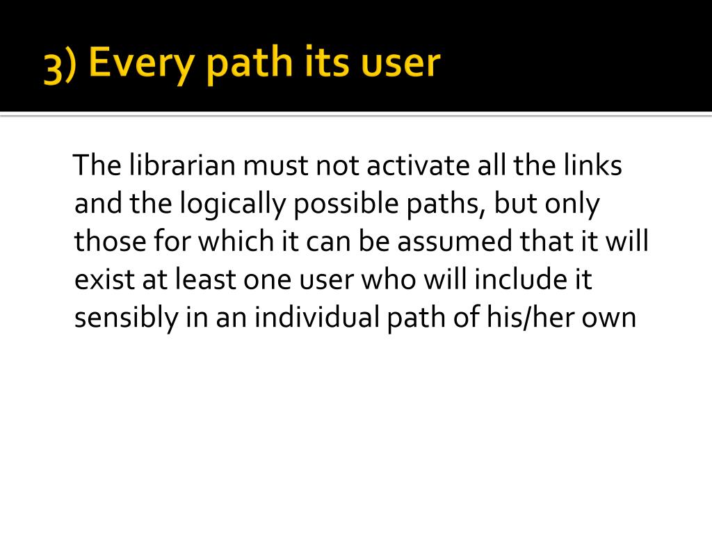 3) Everypathitsuser The librarianmustnotactivateall the links and the logicallypossiblepaths, butonlythoseforwhichit can beassumedthatitwillexist at leastoneuserwhowill include itsensibly in anindividualpathofhis/herown