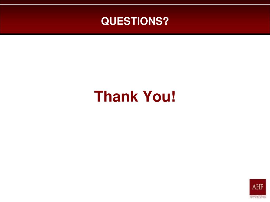 MCM Conclusions and Lessons Learned • Patient-Centered Assessment and Interdisciplinary Team are Effective in Increasing Medical Visit and Medication Adherence. • Barrier Mitigation and/or Removal Increases Patient Success for Adherence. • Multi-Level (PCP, RNCM, Peer) Continual Education on HIV, Chronic Conditions, Medical System Navigation Increases Medical Literacy, Treatment Adherence and Patient Self Management Skills. • Each Patient is Unique and Use of Persistence and Tailored Measures Is Necessary For Success.