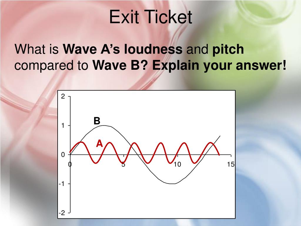 Exit Ticket What is WaveA’sloudness and pitch compared to Wave B? Explain your answer! B A