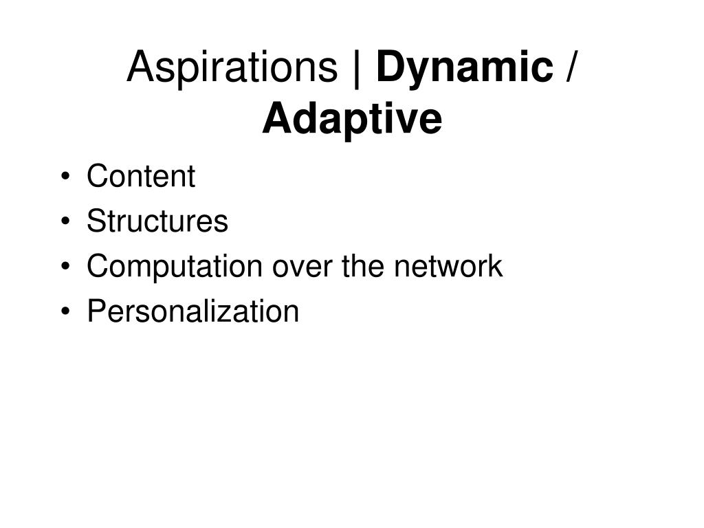 Aspirations | Dynamic / Adaptive • Content • Structures • Computation over the network • Personalization