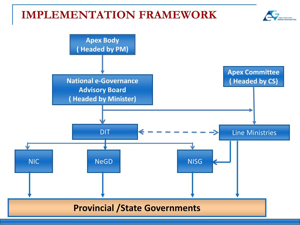 IMPLEMENTATION FRAMEWORK Apex Body ( Headed by PM) Apex Committee ( Headed by CS) National e-Governance Advisory Board ( Headed by Minister) DIT Line Ministries NIC NeGD NISG Provincial /State Governments 10 10