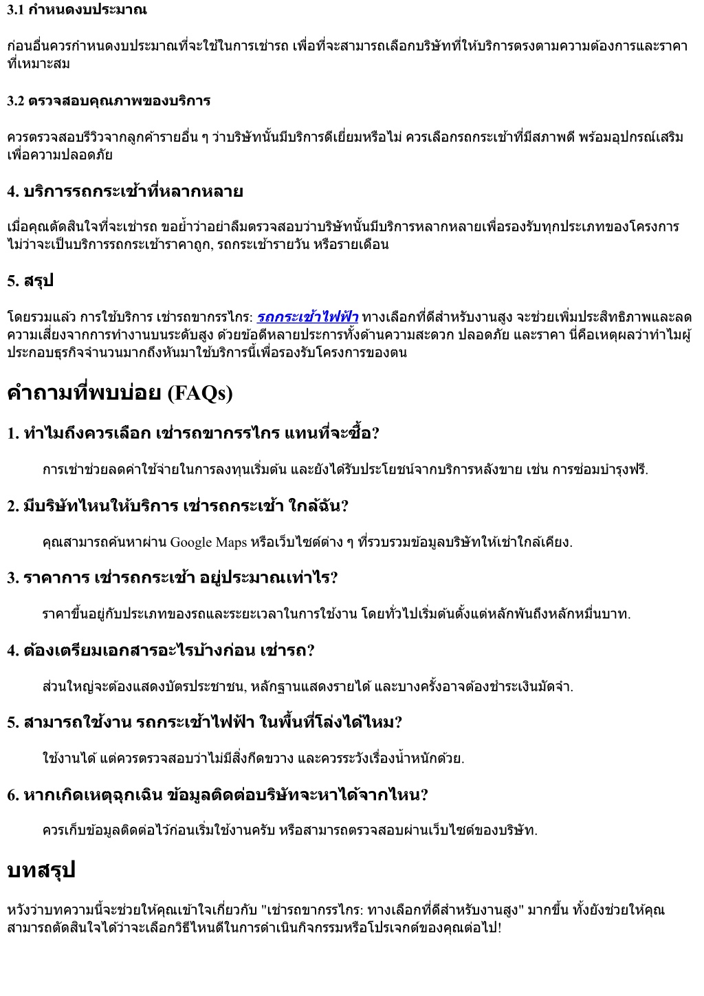 3.1 กําหนดงบประมาณ ก่อนอื?นควรกําหนดงบประมาณที?จะใช้ในการเช่ารถเพื?อที?จะสามารถเลือกบริษัทที?ให้บริการตรงตามความต้องการและราคา ที?เหมาะสม 3.2 ตรวจสอบคุณภาพของบริการ ควรตรวจสอบรีวิวจากลูกค้ารายอื?นๆว่าบริษัทนั?นมีบริการดีเยี?ยมหรือไม่ควรเลือกรถกระเช้าที?มีสภาพดีพร้อมอุปกรณ์เสริม เพื?อความปลอดภัย 4. บริการรถกระเช้าที?หลากหลาย เมื?อคุณตัดสินใจที?จะเช่ารถขอยํ?าว่าอย่าลืมตรวจสอบว่าบริษัทนั?นมีบริการหลากหลายเพื?อรองรับทุกประเภทของโครงการ ไม่ว่าจะเป็นบริการรถกระเช้าราคาถูก, รถกระเช้ารายวันหรือรายเดือน 5. สรุป โดยรวมแล้วการใช้บริการเช่ารถขากรรไกร: รถกระเช้าไฟฟ ้ าทางเลือกที?ดีสําหรับงานสูงจะช่วยเพิ?มประสิทธิภาพและลด ความเสี?ยงจากการทํางานบนระดับสูงด้วยข้อดีหลายประการทั?งด้านความสะดวกปลอดภัยและราคานี?คือเหตุผลว่าทําไมผู้ ประกอบธุรกิจจํานวนมากถึงหันมาใช้บริการนี?เพื?อรองรับโครงการของตน คําถามที?พบบ่อย (FAQs) 1. ทําไมถึงควรเลือกเช่ารถขากรรไกรแทนที?จะซื?อ? การเช่าช่วยลดค่าใช้จ่ายในการลงทุนเริ?มต้นและยังได้รับประโยชน์จากบริการหลังขายเช่นการซ่อมบํารุงฟรี. 2. มีบริษัทไหนให้บริการเช่ารถกระเช้าใกล้ฉัน? คุณสามารถค้นหาผ่าน Google Maps หรือเว็บไซต์ต่างๆที?รวบรวมข้อมูลบริษัทให้เช่าใกล้เคียง. 3. ราคาการเช่ารถกระเช้าอยู่ประมาณเท่าไร? ราคาขึ?นอยู่กับประเภทของรถและระยะเวลาในการใช้งานโดยทั?วไปเริ?มต้นตั?งแต่หลักพันถึงหลักหมื?นบาท. 4. ต้องเตรียมเอกสารอะไรบ้างก่อนเช่ารถ? ส่วนใหญ่จะต้องแสดงบัตรประชาชน, หลักฐานแสดงรายได้และบางครั?งอาจต้องชําระเงินมัดจํา. 5. สามารถใช้งานรถกระเช้าไฟฟ ้ าในพื?นที?โล่งได้ไหม? ใช้งานได้แต่ควรตรวจสอบว่าไม่มีสิ?งกีดขวางและควรระวังเรื?องนํ?าหนักด้วย. 6. หากเกิดเหตุฉุกเฉินข้อมูลติดต่อบริษัทจะหาได้จากไหน? ควรเก็บข้อมูลติดต่อไว้ก่อนเริ?มใช้งานครับหรือสามารถตรวจสอบผ่านเว็บไซต์ของบริษัท. บทสรุป หวังว่าบทความนี?จะช่วยให้คุณเข้าใจเกี?ยวกับ "เช่ารถขากรรไกร: ทางเลือกที?ดีสําหรับงานสูง" มากขึ?นทั?งยังช่วยให้คุณ สามารถตัดสินใจได้ว่าจะเลือกวิธีไหนดีในการดําเนินกิจกรรมหรือโปรเจกต์ของคุณต่อไป!