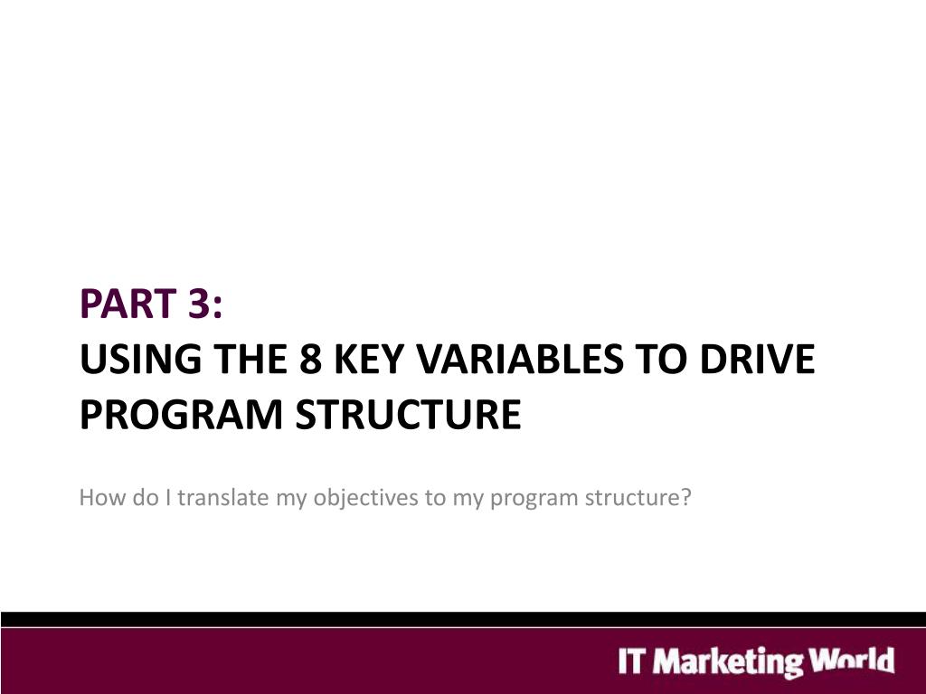 Part 3: Using the 8 key variables to drive Program Structure How do I translate my objectives to my program structure?