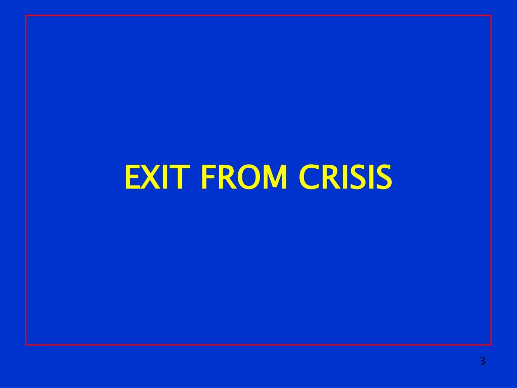 EXIT FROM CRISIS (4) What is the shape of the exit? • Looks like V initially • But more shocks W-shaped • A messy, troubled exit • Will we recover? • Yes, adjustments underway, will take time • Cut debt, raise savings, … all happening