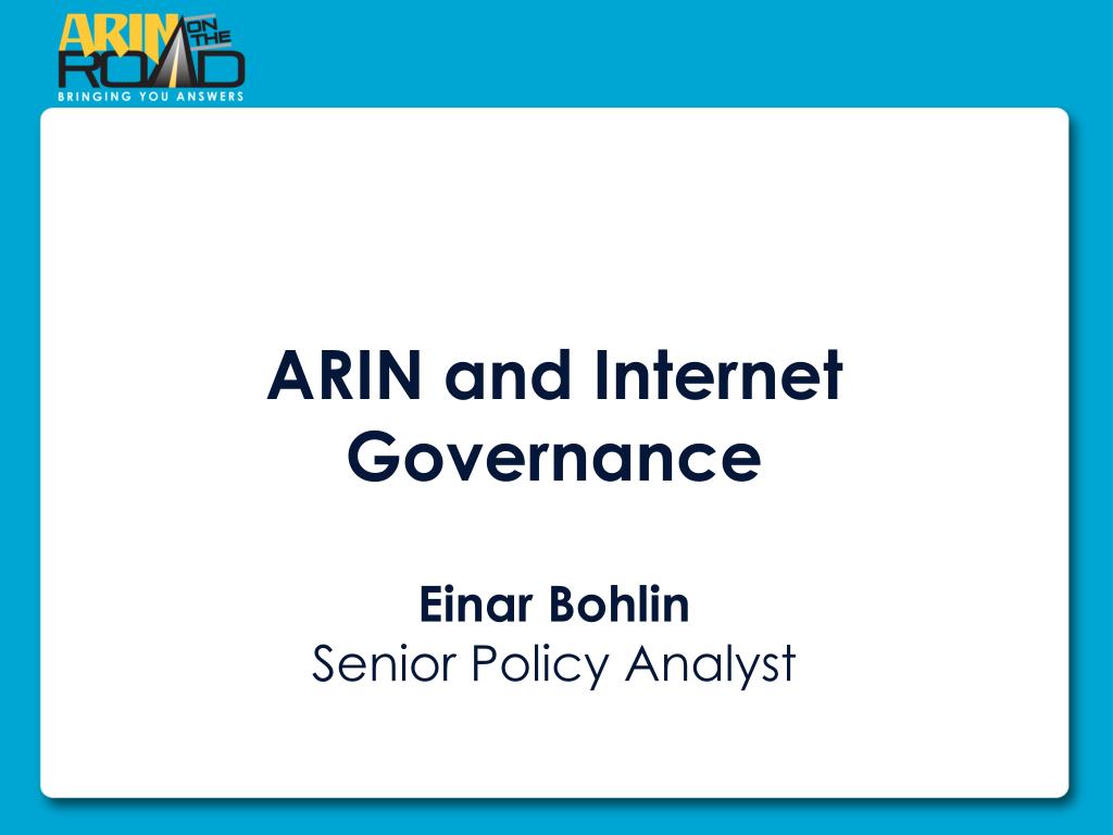 ARIN and Internet Governance EinarBohlin Senior Policy Analyst
