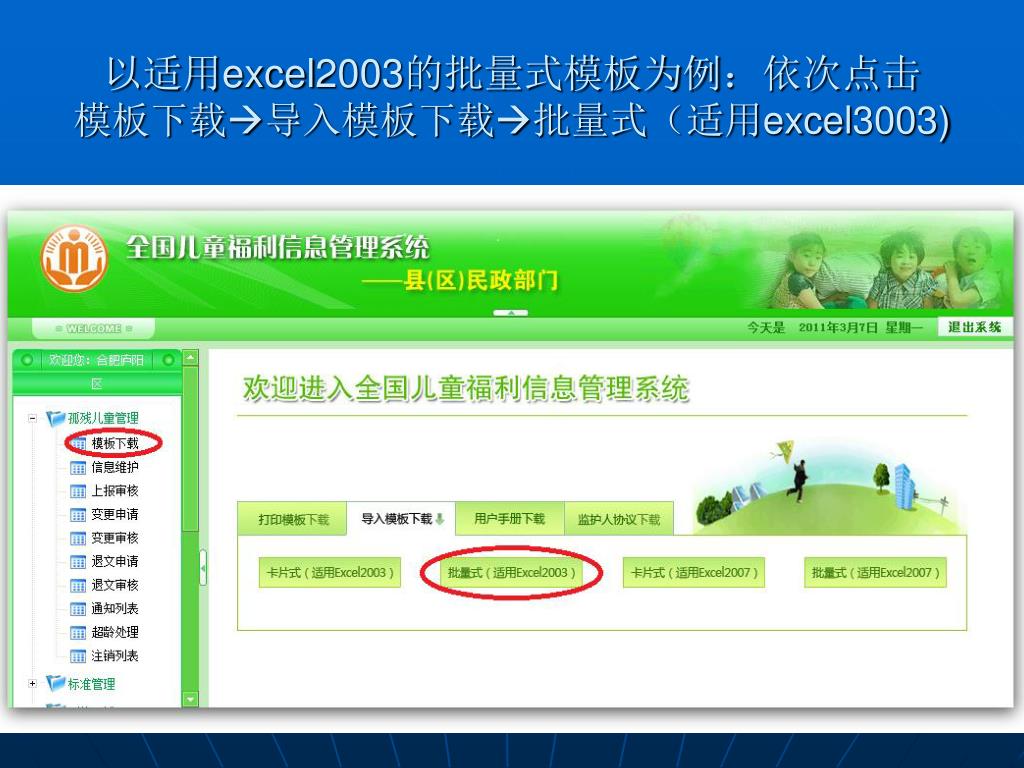 以适用excel2003的批量式模板为例:依次点击模板下载导入模板下载批量式(适用excel3003)以适用excel2003的批量式模板为例:依次点击模板下载导入模板下载批量式(适用excel3003)